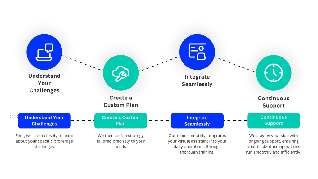 Discover our easy 4-step proven process designed for busy brokers needing immediate back office support.
